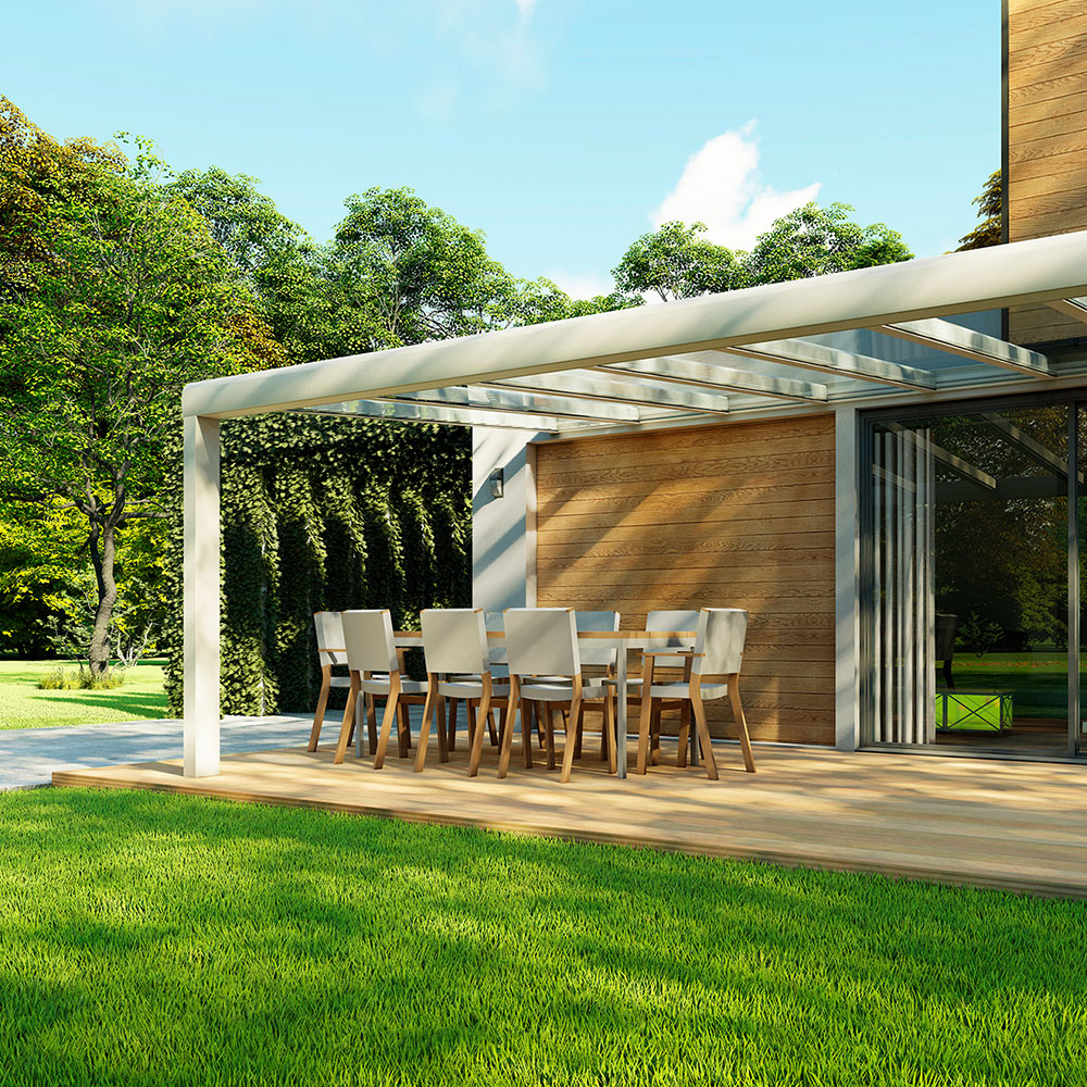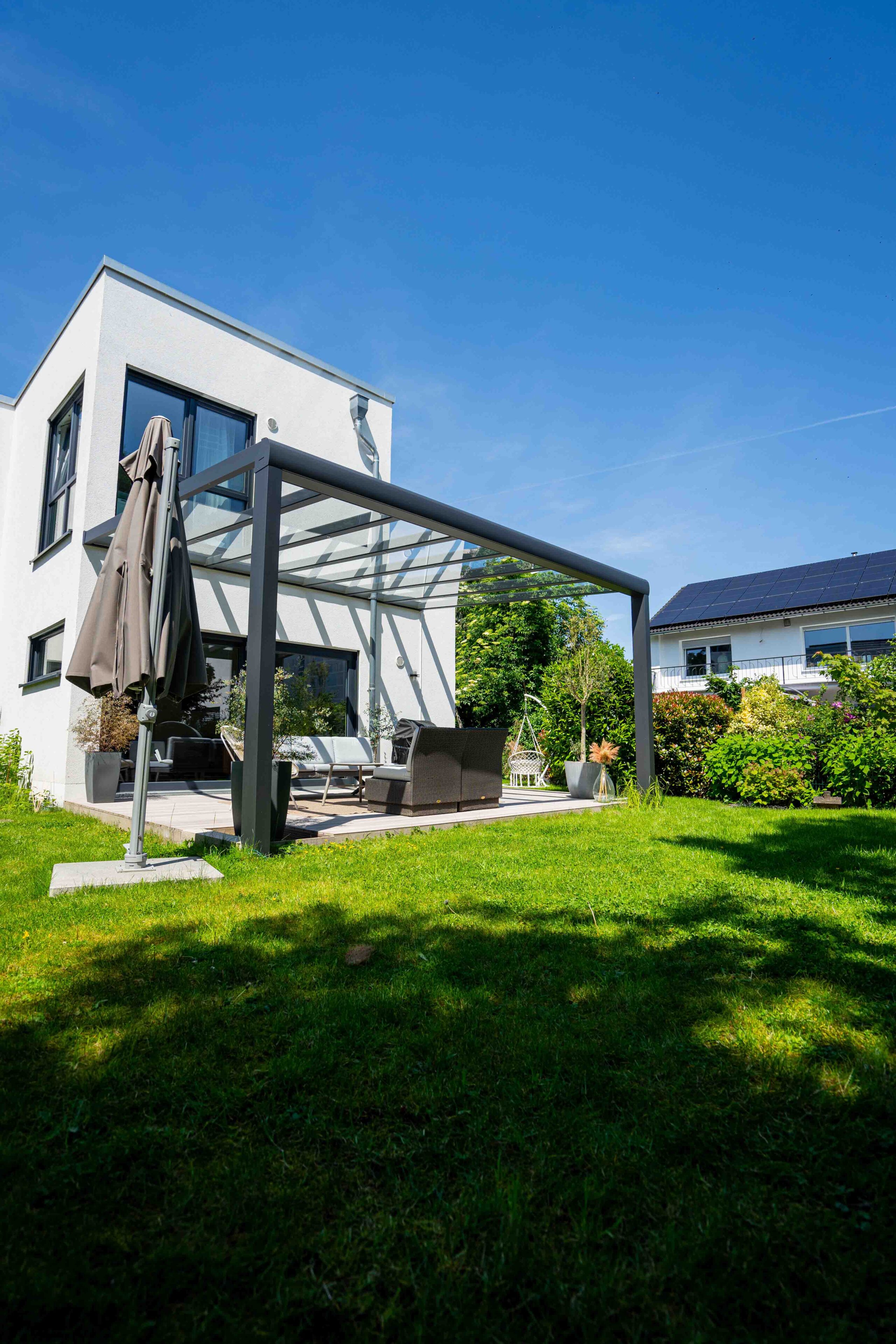 Erleben Sie in diesen Bildern, wie die robuste Konstruktion mit der klaren, modernen Optik verschmilzt und einen Bereich schafft, der nicht nur bei jedem Wetter Schutz bietet, sondern auch maximalen Komfort verspricht.
