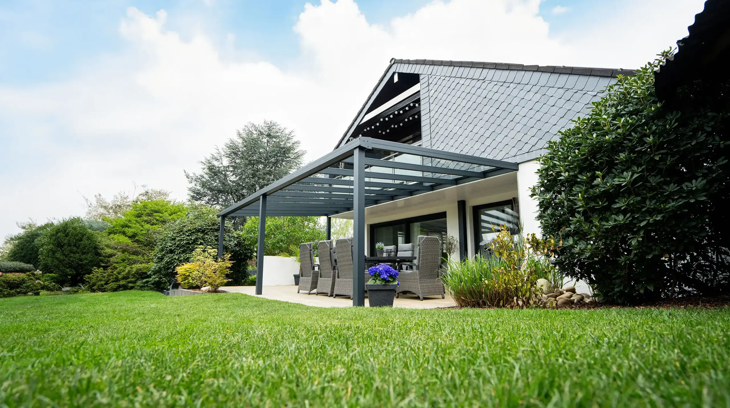 Erweitern Sie Ihren Wohnraum ins Freie durch langlebiges Design mit dem Aylux Terrassendach Premiumline.